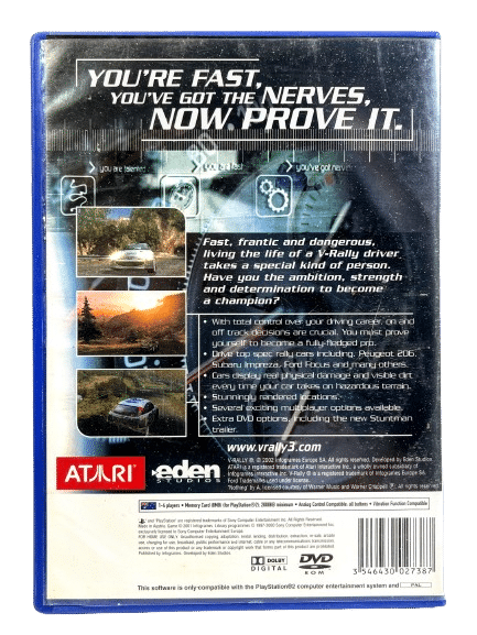 Official NZ / AUS Edition in excellent condition & 100% complete with contents: V RALLY 3 / VRALLY 3 / V-RALLY 3 for SONY PlayStation 2. This preowned game comes complete with case, authentic New Zealand cover (with the Signature “G” Classification embedded in the cover art), manual / booklet, and game disc.
