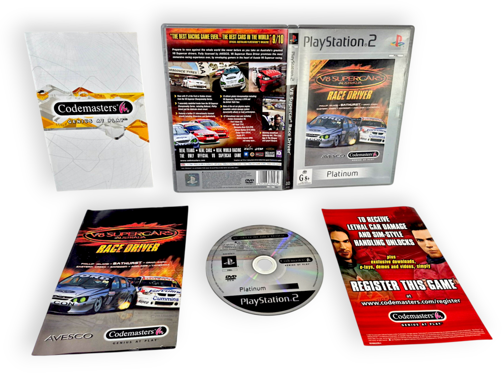 V8 Supercars Race Driver (PS2). This preowned game is in good condition and includes pictured contents. Mild disc surface imperfections only which do not hinder performance or gameplay in the slightest. Refer photographs.