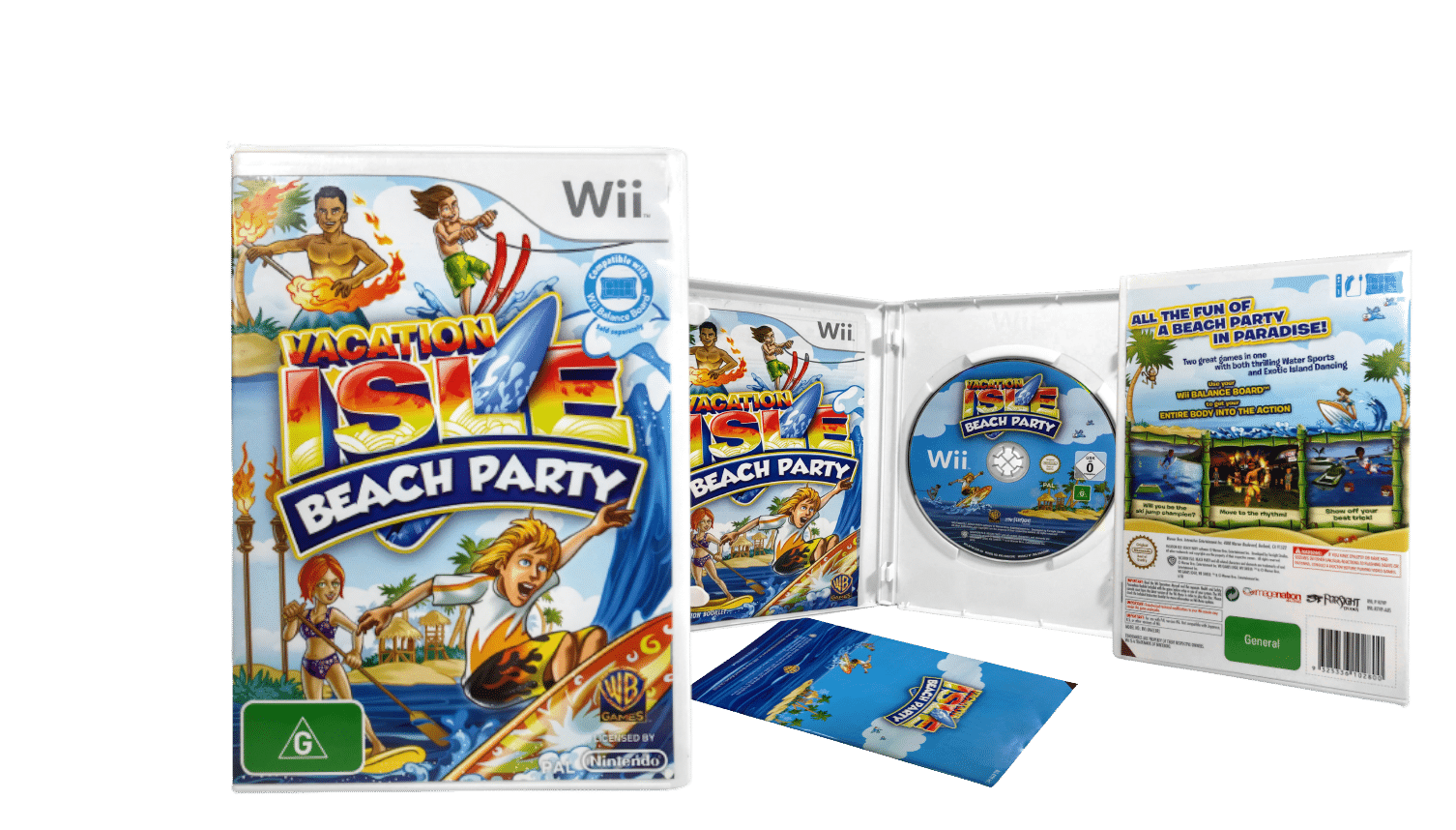 Mint condition & 100% complete with contents: VACATION ISLE BEACH PARTY for NINTENDO Wii. This preowned game is in pristine condition and comes complete with case, cover, manual / booklet, and game disc. A tidy and complete collector’s item.