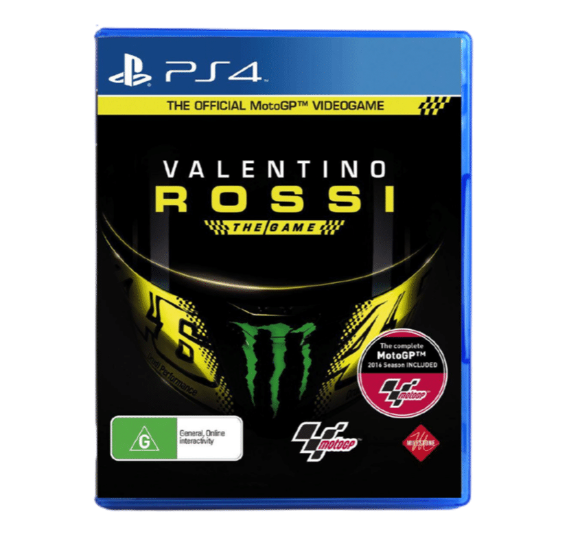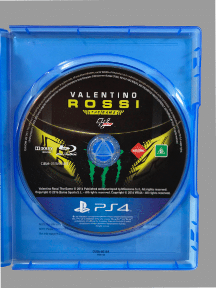 Excellent condition & 100% complete with contents: VALENTINO ROSSI for SONY PlayStation 4 / PS4. This preowned game comes complete with case, cover, and game disc. Light spot of laminate plastic wear on the front of the case, but the contents inside are pristine. No paper manual was ever printed for or released with this game, but the game is self-explanatory, and the instructions are readily available online.