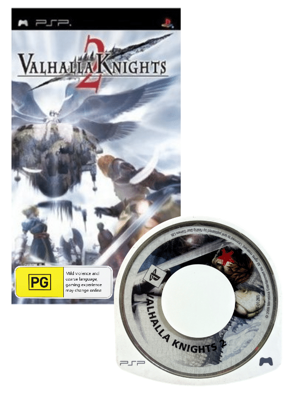 Valhalla Knights 2 for SONY PSP / PlayStation Portable. This preowned game disc is in excellent condition and comes inside its miniature UMD case. BOX / GAME CASE NOT included.