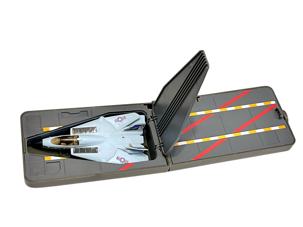DESCRIPTION: This vintage military playset features a folding base environment along with a jet aircraft and multiple miniature soldier figures and accessories. Playsets like this were popular in the 1980s and 1990s, allowing children to create detailed battle or mission scenarios with vehicles and figures. The fold-out base design provides storage for figures and accessories while also transforming into a play environment when opened. The included jet aircraft and miniature soldiers add to the tactical theme of the set. Military playsets encouraged imaginative storytelling and strategic play. For collectors of vintage action toys, sets like this offer both nostalgic display value and interesting miniature accessories.