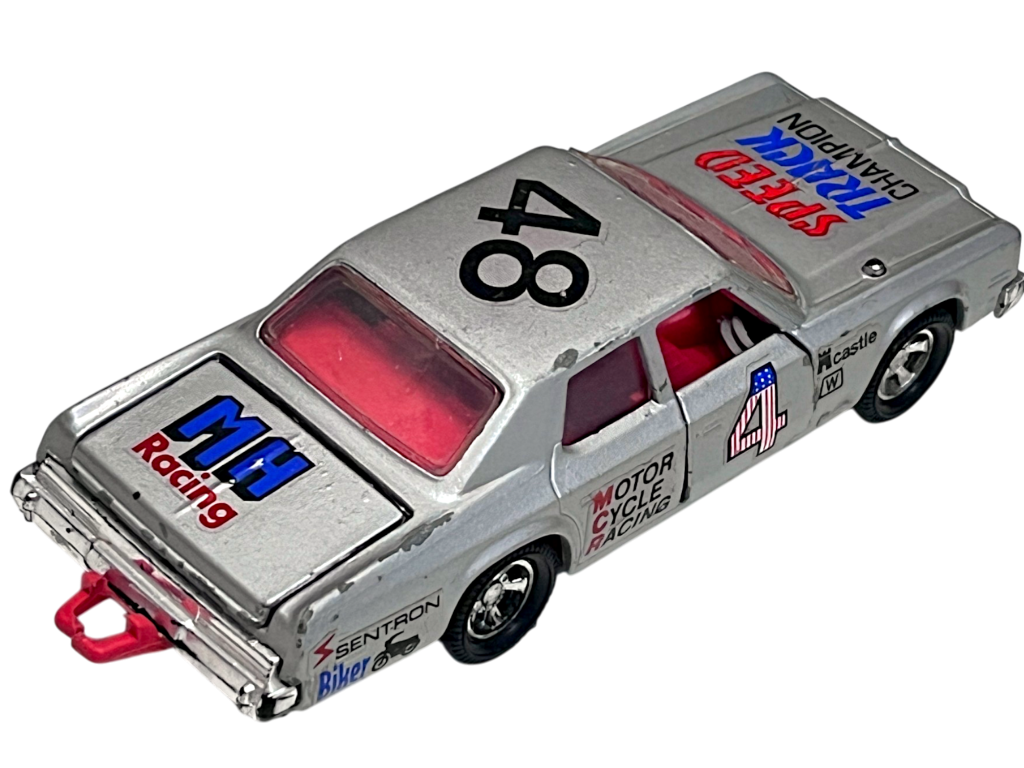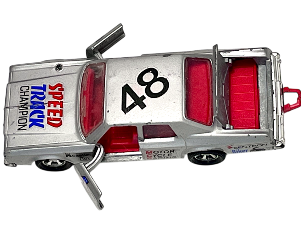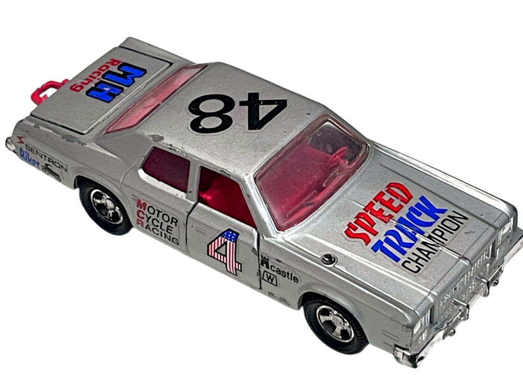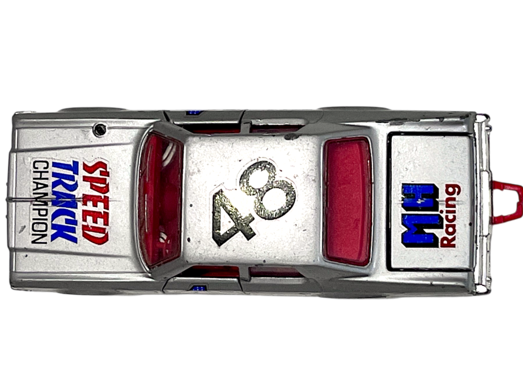 DESCRIPTION: This vintage die-cast racing car features a classic stock car design with bold racing graphics including “Speed Truck Champion” and the number 48 displayed prominently on the body. The metal construction and detailed moulding reflect the style of collectible die-cast vehicles popular with toy car enthusiasts. Small die-cast cars like this have long been collected both as toys and as display pieces representing different racing themes and eras. The car features rolling wheels and a sturdy metal body typical of classic die-cast vehicles. Whether added to a vintage toy collection or displayed alongside other racing cars, this model captures the nostalgic appeal of traditional die-cast racing vehicles.