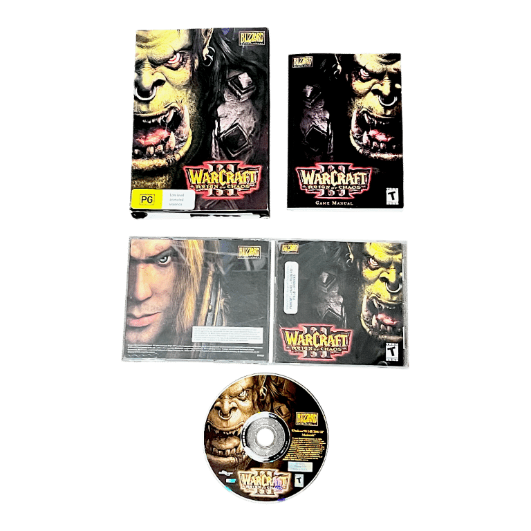 Warcraft III: Reign of Chaos (PC Big Box). This pre-owned PC game is in good condition with any scratches mild and purely cosmetic (disc is perfectly readable)and features the pictured contents and box.