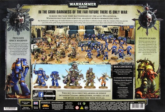 Warhammer 40,000 8th edition kicks off with a bang with this fantastic value boxed set! Inside you’ll find two armies of brand new miniatures, the Primaris Space Marines & Death Guard, the full hardback Warhammer 40,000 rulebook, dice, range rules and a complete set of datasheets for fielding both armies.