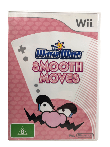 WARIO WARE SMOOTH MOVES for Nintendo Wii. Very good condition, with case, cover, Nintendo paper insert, and game disc. Case and cover near-mint. Disc good, with some very fine superficial markings / cosmetic scratches, but these are extremely minor imperfections which do not affect game play in any way.