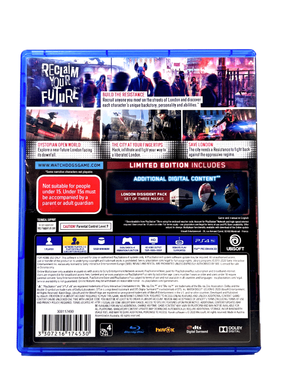 Watch Dogs Legion Limited Edition (PS4) *MINT COLLECTOR’S*