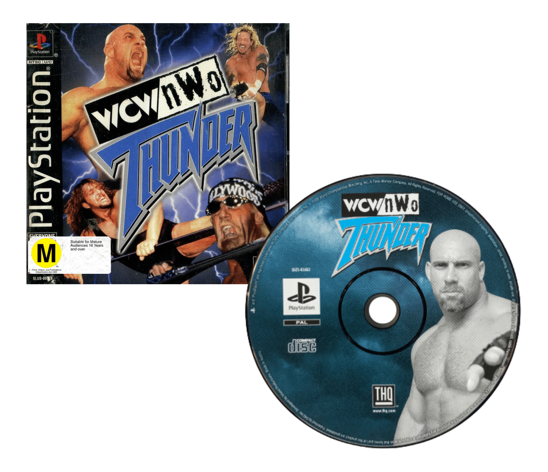 WCW NWO Thunder Wrestling for SONY PlayStation 1 / PS1. This preowned game disc is in good playing condition – tested – with light markings and superficial scratches which do not inhibit game play in the slightest. Please note that the original case is not included, but the disc will be packaged and posted securely inside an empty case, or can be collected from our Appleby Games Christchurch Store during store opening hours.