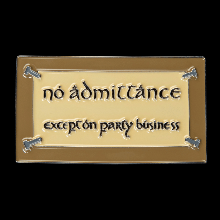 Plastic magnet featuring the iconic “No Admittance” Bag End sign.