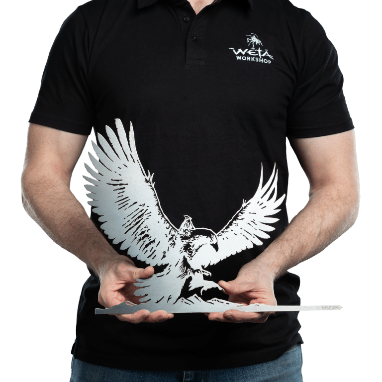 Join us in celebrating the fusion of worlds, where craftsmanship meets creativity, and humble beginnings lead to epic tales. Gandalf on Gwaihir awaits, ready to soar into your imagination. Get yours today and let the magic unfold.” “• Designed by Wētā Workshop concept artists Simon Lissaman and Iona Brinch, made by fellow NZ-based innovators Metalbird;
