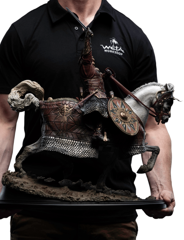 Please note: Images are of a pre-production prototype. Each piece is hand painted and some variations may occur. It takes hundreds of hours to design, sculpt, model make, mold, and paint the prototype for each new Middle-earth piece. Whether it be a prop replica, beautiful environment, or iconic character, we treat our collectibles with the same level of care and attention to detail that we bring to our film work. “He is my favourite character. I tried to convey all the emotions I felt while watching that scene, capturing the very soul of the character, especially in that moment when he shouts ‘DEATH!’ Even his horse embodies that battle cry, reflecting that strength. Théoden and Snowmane are in perfect sync, possessing an iron will determined to bring about that demise. It’s powerful.” Mauro Santini – Principal Sculptor, Wētā Workshop