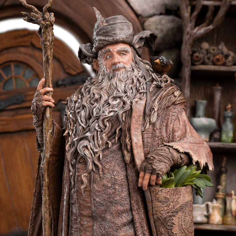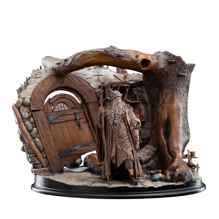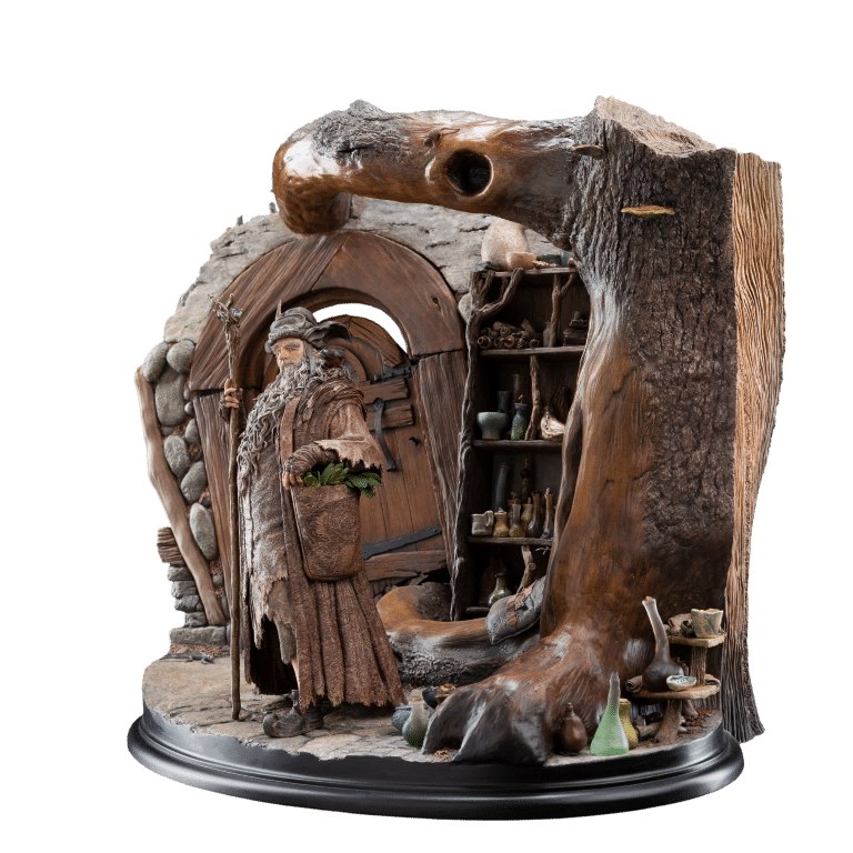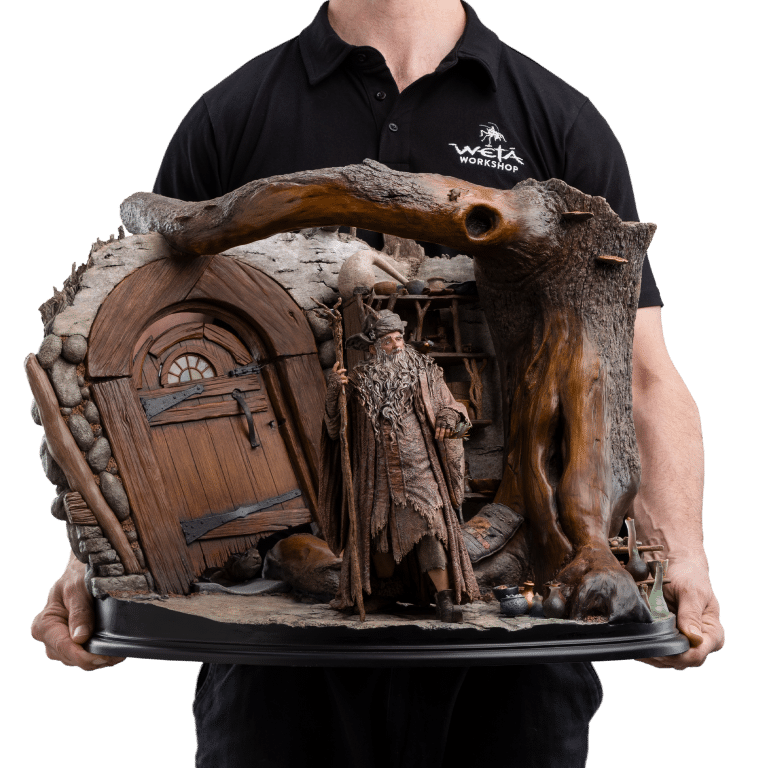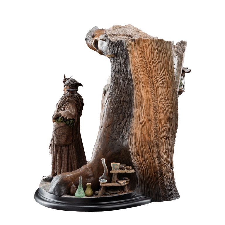 Weta Workshop was thrilled to work on the epic trilogy that was The Hobbit, contributing design, specialty props and specialty costumes. As it is told in the ancient lore, Radagast, a wizard of curious and rustic disposition, dwelt in a house most befitting his nature. In a secluded glen in the southern reaches of Mirkwood™, where the shadows of the great trees grew long, there lay Rhosgobel, the “brown dwelling.” This abode was no ordinary cottage but rather a reflection of its master: untamed, overgrown, and imbued with a strange and whimsical charm. “Step into the world of Middle-earth™ with our latest premium 1:6 scale statue: Radagast in Rhosgobel. This stunning collectible captures the essence of the enigmatic Brown Wizard, nestled within his whimsical, forest-laden cottage.