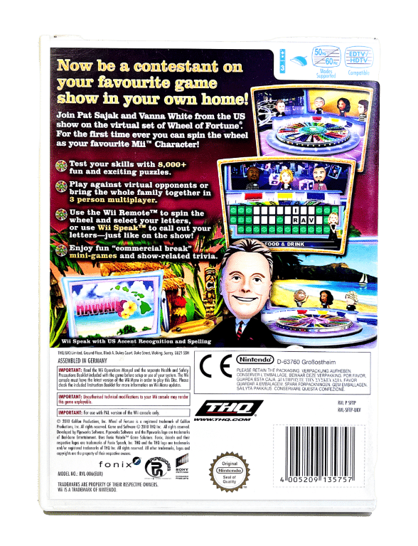 Rare Authentic NZ (PAL) Edition in Mint Condition & 100% complete with contents: WHEEL OF FORTUNE for NINTENDO Wii. This preowned game is in pristine condition and comes complete with case, cover, manual / booklet, and game disc. A tidy and complete collector’s item.