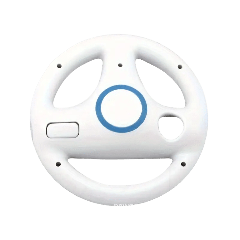 Wii MarioKart Racing Wheel for Nintendo Wii Racing Games. This preowned Wheel is in excellent condition and and is a robust, quality aftermarket (non-Nintendo) Wii Racing Wheel for use with racing games such as Sonic and All Stars Racing, Mario Kart, and Madgascar Kartz.