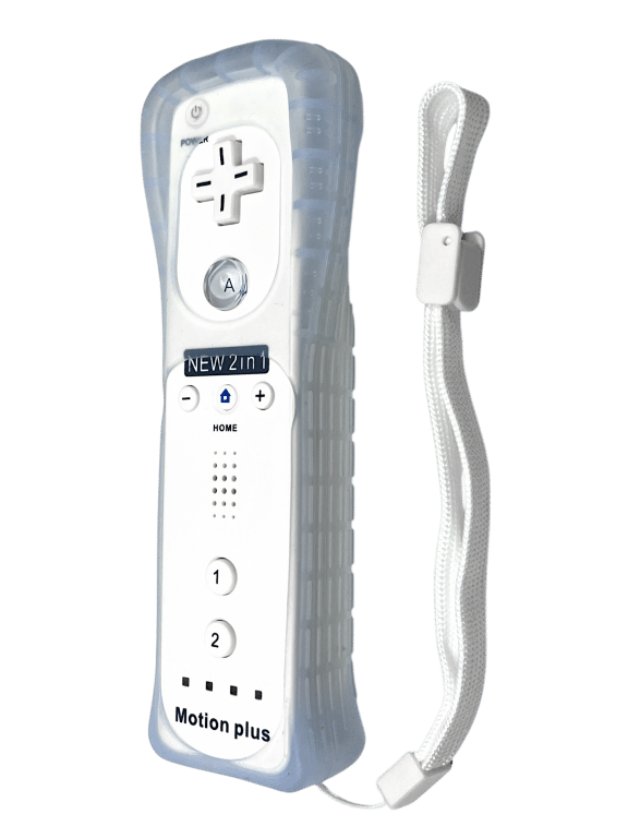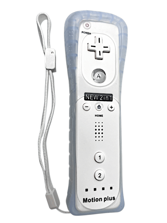 WHITE Wireless Wii Remote (Controller) with inbuilt Motion 2 in 1 (Motionplus) Motion Plus technology. Remote comes complete with Silicone Rubber Protective Sleeve and Safety Strap. For use with Nintendo Wii. NEW. Takes 2 x AA Batteries (batteries sold separately).