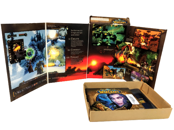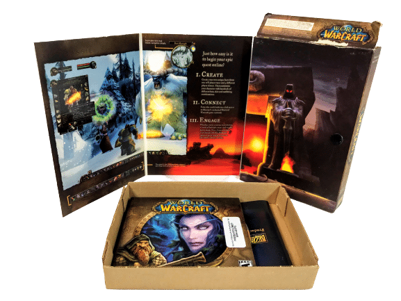 Excellent condition: World of Warcraft Blizzard (PC) 4 Discs + Collector’s Contents. All inner contents pristine – a very tidy collector’s bundle. Light card wear to outer display box, but still presents well as pictured.