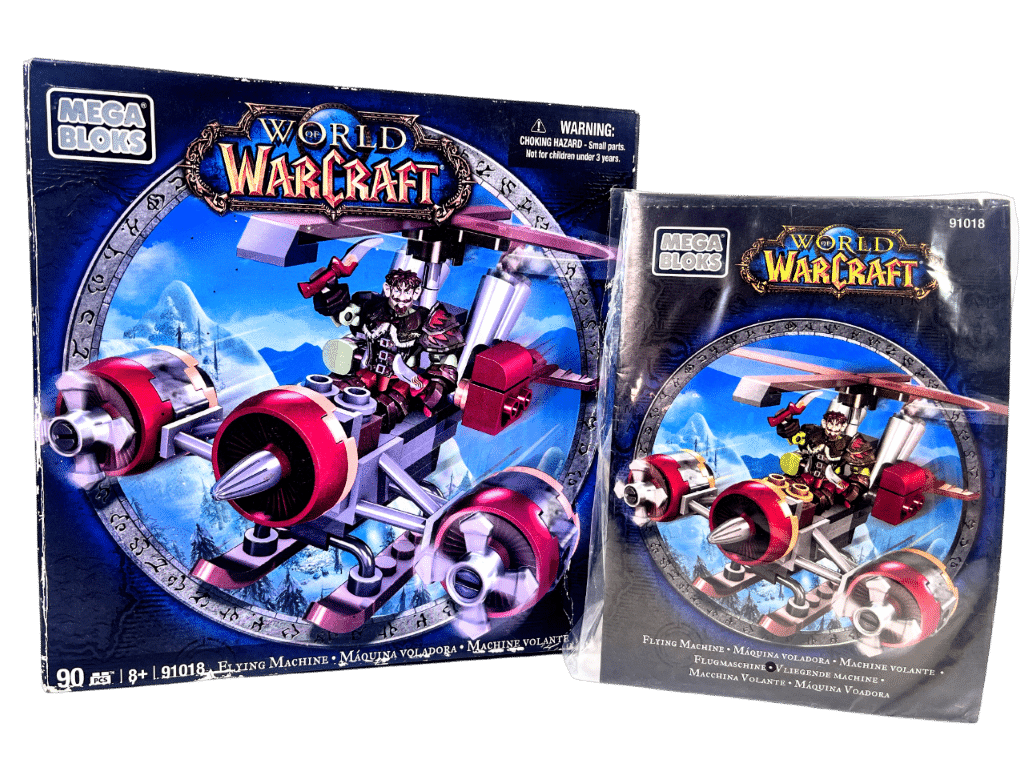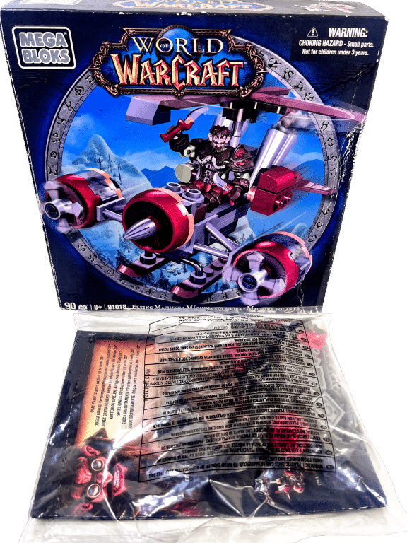 World of Warcraft: MEGA BLOKS Flying Machine. Mega Blok pieces (also know as Mega Blocks) are still BRAND NEW PLASTIC SEALED inside box. Box has pictured shelf wear from storage, but the internal contents are still new sealed.
