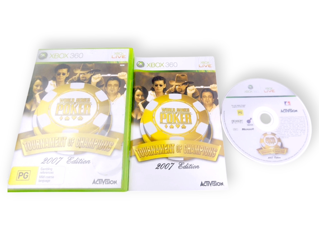 World Series Poker Tournament of Champions (Xbox 360)This preowned (Xbox 360) game is in good condition and includes pictured case + cover + game disc.