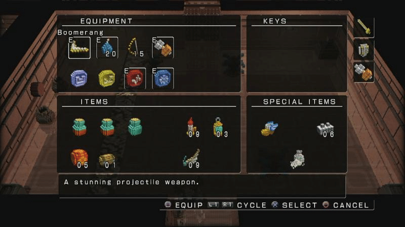 - Customize your hero – When pixels are your building blocks, the possibilities are unlimited. Freely edit the look of your character, or design one completely from scratch, and then trade designs with friends via a compatible USB storage device. Your hero’s blade is also upgradeable, letting you add length and width to create a sword that fills the whole screen!
