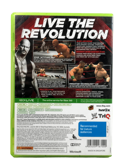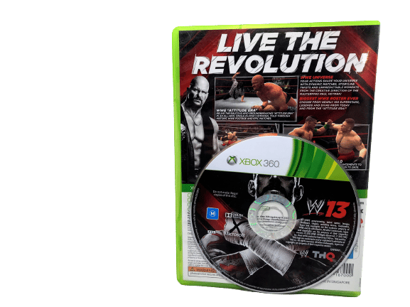 Step into the ring of the ‘13 edition of the WWE video game. WWE ’13 transforms gameplay through the introduction of WWE Live, completely changing the way players embrace the videogame’s audio and presentation elements. Predator Technology returns to further to further implement critical gameplay improvements while fan favorites in WWE Universe Mode and the franchise’s renowned Creation Suite are poised to offer the utmost in player freedom. Furthermore, WWE ’13 introduces a groundbreaking, single-player campaign based on the highly influential Attitude-Era. Complete with a robot ruster-the largest to date in the franchise–along with a host of additional features, WWE ’13 is ready to live a revolution of its own.