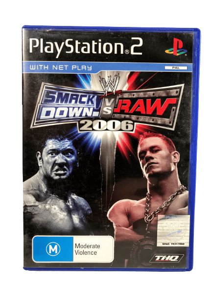 From the most successful wrestling game series of all-time comes the ultimate achievement in sports entertainment – WWE SmackDown! vs RAW 2006. Enter the ring for the fight of your life against top WWE Superstars and if your good enough, the championship. WWE Smackdown! vs Raw 2006 will redefine the wrestling genre by delivering the deepest and most realistic wrestling experience ever, yet easy enough for casual gamers to pick up and play. New high-resolution textures and for the first time in the series, motion-capture technology will bring WWE programming to life like never before. The improved fighting system will bring a new level of realism and tactical thinking to matches, while the enhanced online mode will create the first ever virtual WWE championship on PS2. An amazing 100 different match types to challenge your wrestling skill and from the halls of immortality, a new roster of celebrated WWE Legends. Lace up your boots for the definitive wrestling experience that is WWE SmackDown! vs RAW 2006.