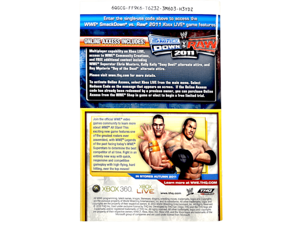 WWE Smackdown! vs. Raw 2011 for XBox 360.