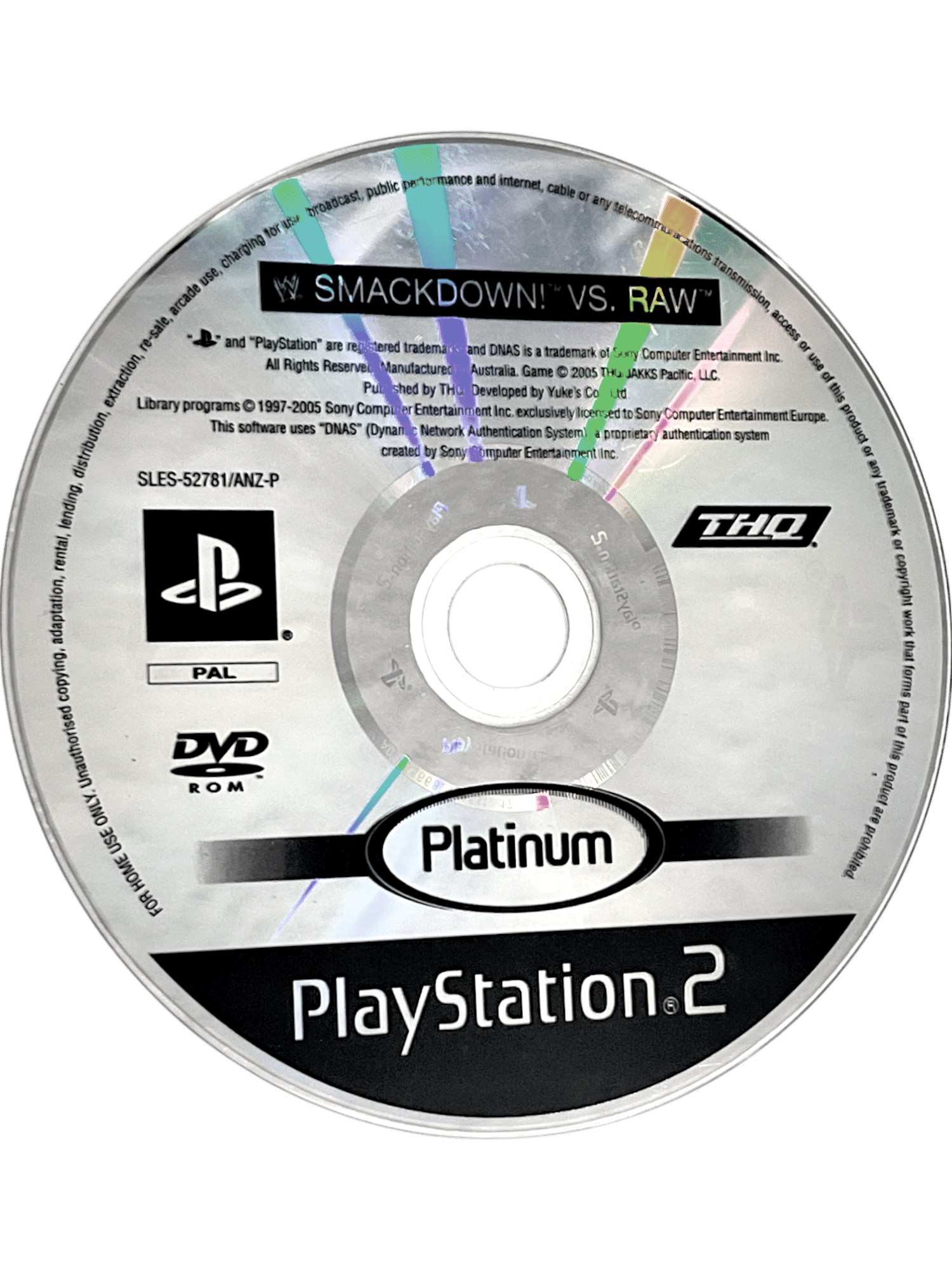 WWE Smackdown vs. Raw (PS2). This preowned SONY PlayStation 2 game disc (PS2 game disc) is in very good condition with only faint markings superficial scratches only which do not affect gameplay in the slightest (game includes 30 DAY WARRANTY). Disc comes inside an empty blank case. Please note that the original case is NOT included.