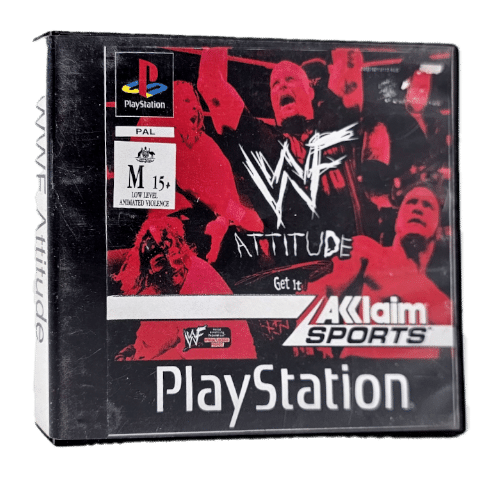 WWF ATTITUDE: Get It! For SONY PlayStation / PS1. This preowned game includes pictured case + covers + manual / booklet + game disc. Ex-rental. Refer images.