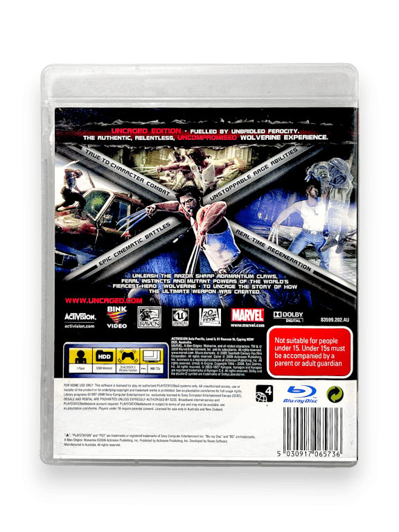 RARE & collectible PS3 Marvel game in excellent condition & 100% Complete with Contents: X-Men Origins Wolverine Uncaged Edition for SONY PlayStation 3 / PS3. This preowned game is in superb condition, and comes complete with case, cover, manual / booklet, and game disc. The only notable imperfection I could find was along the top edge of the paper cover where I spotted some spots of whitening at the very edge. But this is purely cosmetic and this is overall a tidy and complete collector’s item. Refer images.