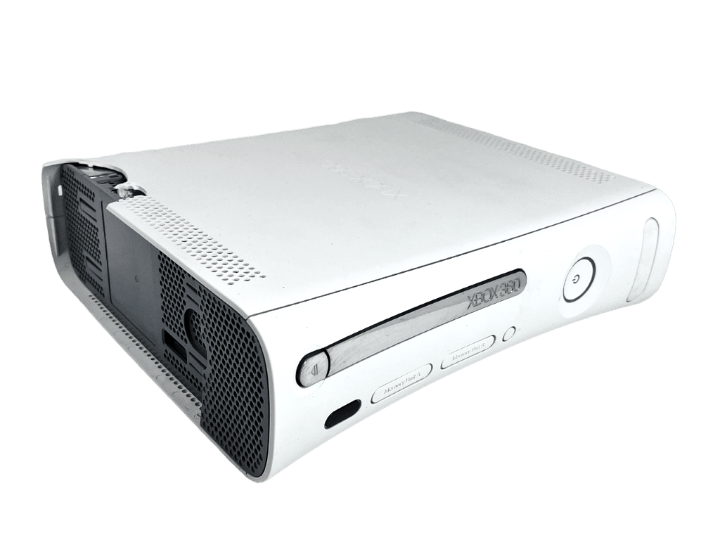 XBox 360 Console (ORIGINAL WHITE) (Red Light – Needs Repair). This preowned launch Xbox 360 does not power on – red light flashes. Console is being sold as a preowned console in need of repair or for parts. No accessories, controller, or hard drive included. Console only. Good One area of plastic damage pictured, but tidy aside from this. Refer photographs.