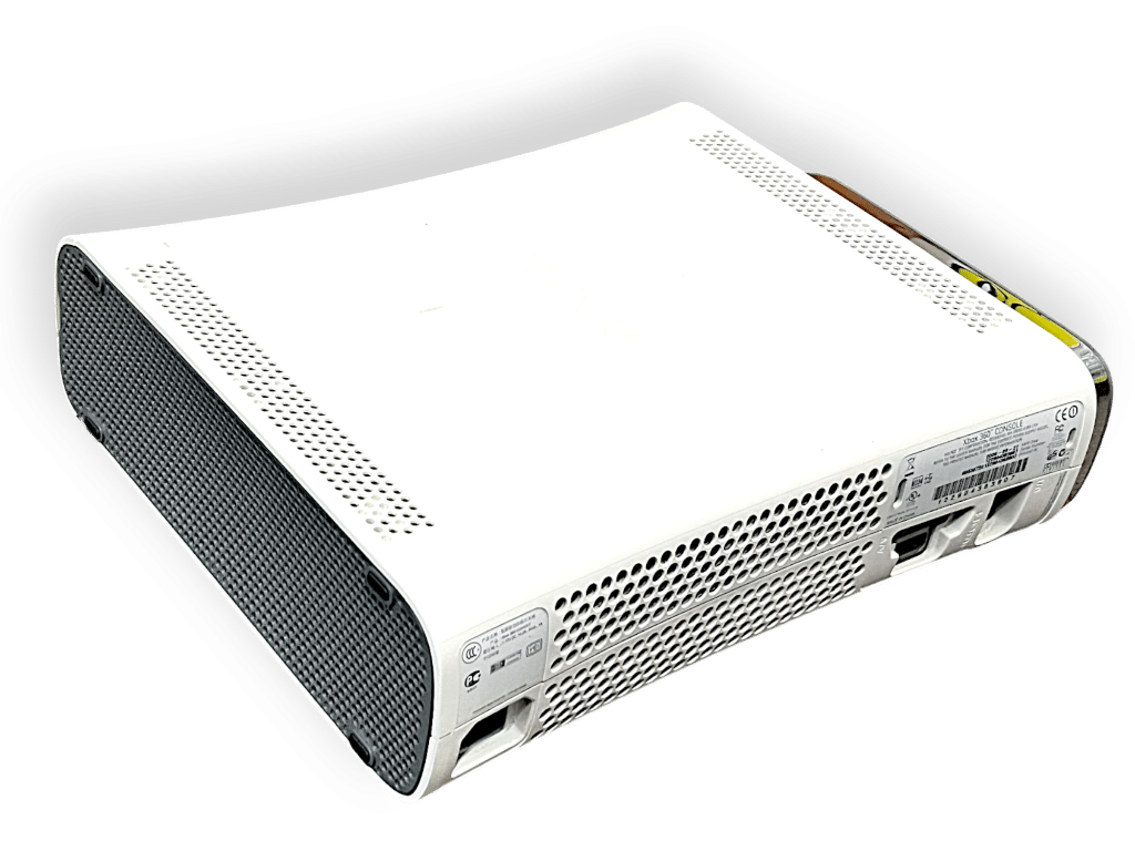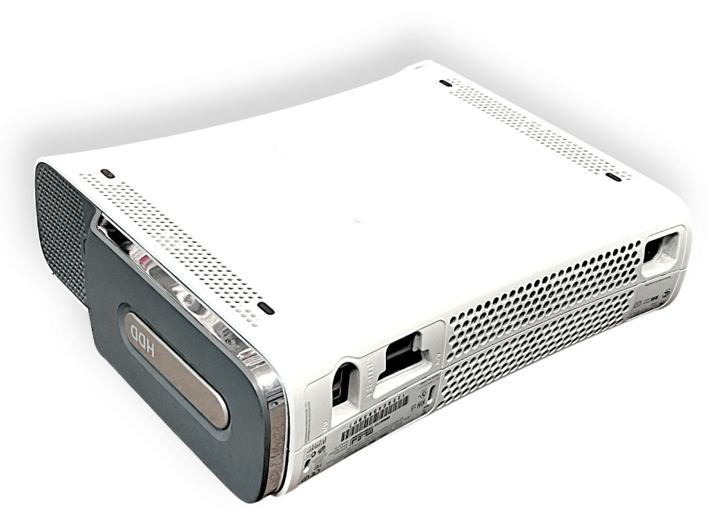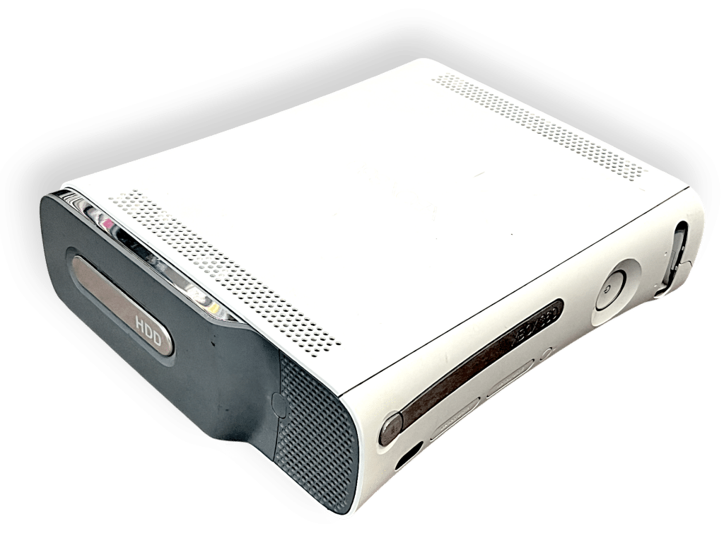 This original white Xbox 360 console includes a detachable hard drive and classic front panel design. Known for its extensive game library and online capabilities, it supports physical discs and downloadable content. Ideal for retro gaming setups, it remains a beloved platform for multiplayer, media playback, and iconic titles from the mid-2000s.
