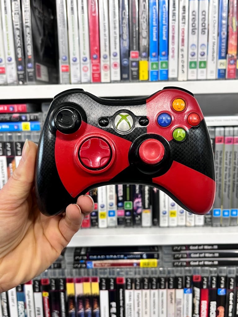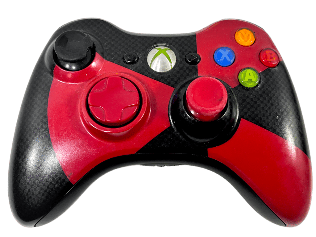 The award-winning Xbox 360 Wireless Controller now comes in a unique radioactive black and red design. Experience wireless gaming. The Radioactive Design “Exclusive” controller, was released in October 2009 and was available exclusively from GameStop or (in Australia) from EB Games. The design features a carbon black pad with a red radiation symbol emanating from the right analog stick. The left analog stick is black and the right analog stick and D-pad are red.
