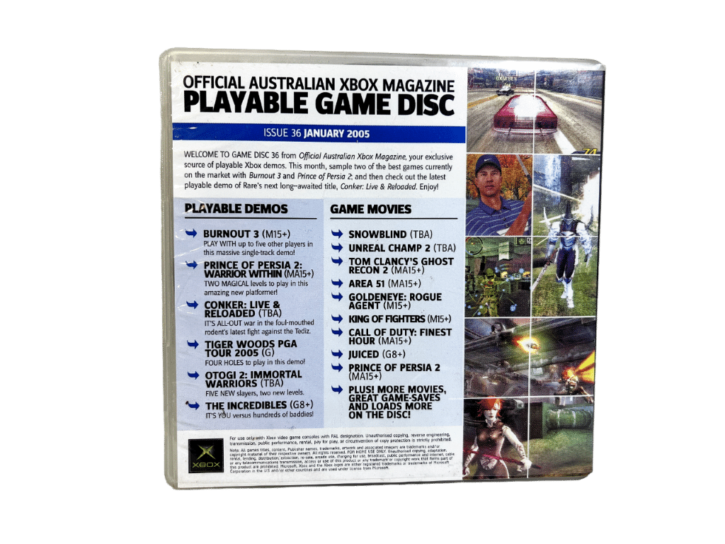 Authentic Retro XBox Magazine Subscription Demo Disc Compilation with Original Box / Carded Sleeve. The Official Australian (for both Australia and NZ) Magazine Discs were released sequentially as promotional content for upcoming XBox games, such as Grand Theft Auto 5 (GTA V), Call of Duty Black Ops 2, Final Fantasy XII-2, and more.