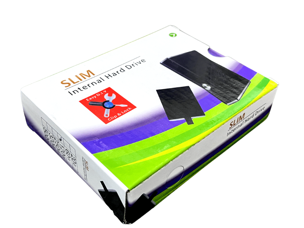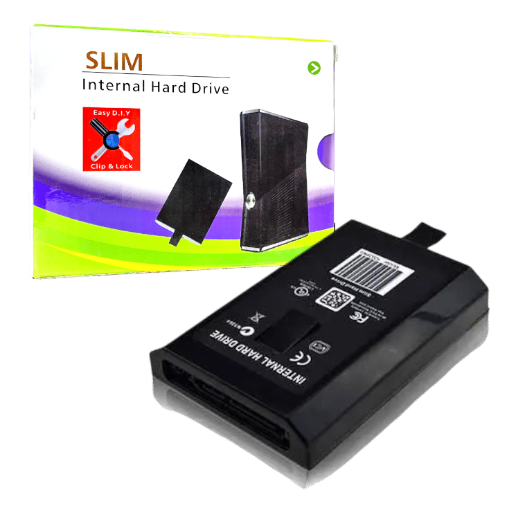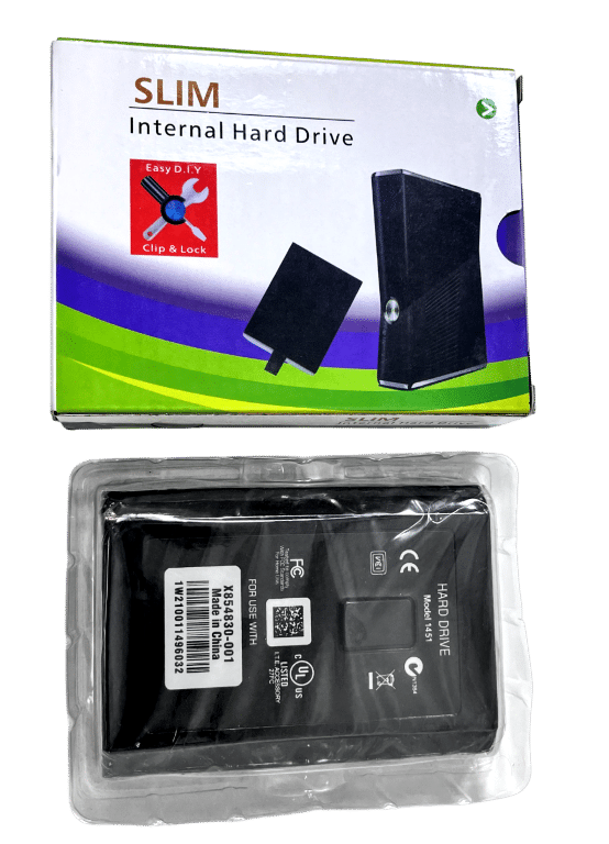 Xbox 360 Hard Drive (120GB) NEW IN BOX. 120 GIGABYTE hard drive complete with caddy. Slots into hard drive compartment on side of Xbox 360 Slim Console.