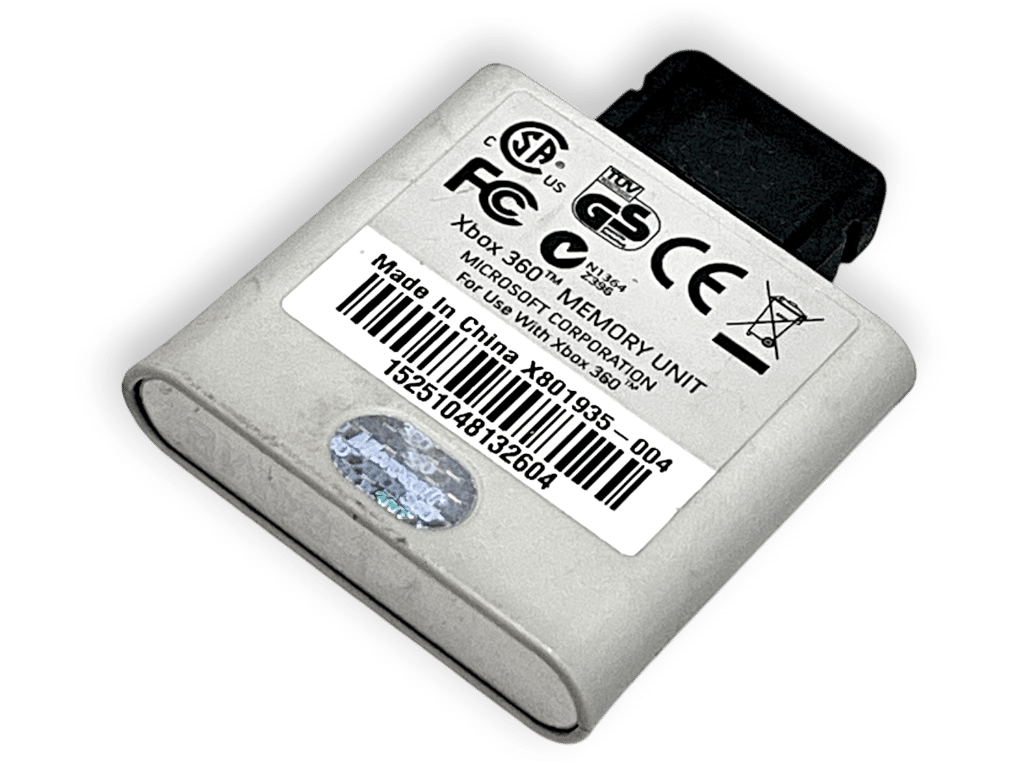 Xbox 360 Memory Unit (512MB) *GENUINE MICROSOFT XBOX 360*. This pre-owned authentic Microsoft Xbox 360 memory card is in very good condition with mild surface markings and slight discoloration of the original milky white shell as purely cosmetic imperfections.