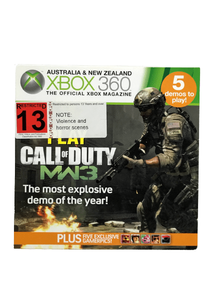 SALE! 25% OFF! THIS WEEK ONLY! RARE CALL OF DUTY MODERN WARFARE 3 RELEASE EDITION – Authentic Retro XBox 360 Magazine Subscription Demo Disc Compilation with Original Box / Carded Sleeve. The Official Australian (for both Australia and NZ) Magazine Discs were released sequentially as promotional content for upcoming XBox 360 games, such as Grand Theft Auto 5 (GTA V), Call of Duty Black Ops 2, Final Fantasy XII-2, and more.