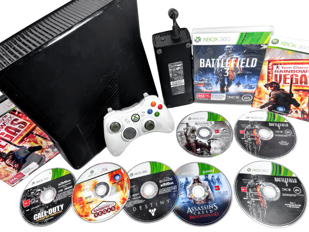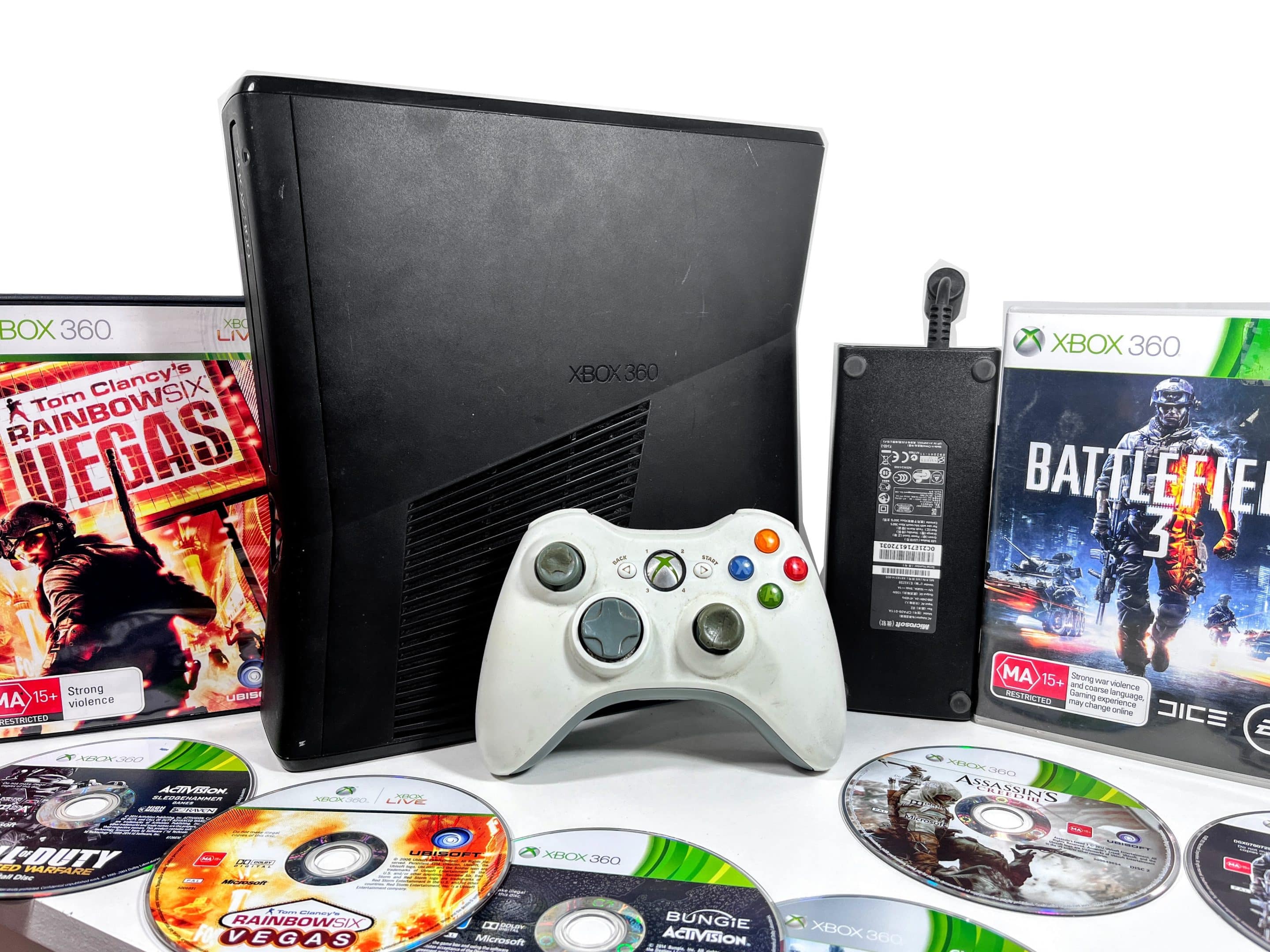 FOR SALE: XBox 360 Slim Bundle. This preowned XBox 360 console is in good condition and includes a 120GB Hard Drive + Official Microsoft Wireless XBox 360 Controller + AC Power Adapter + Detachable Power Lead + HDMI Lead + Games. Â