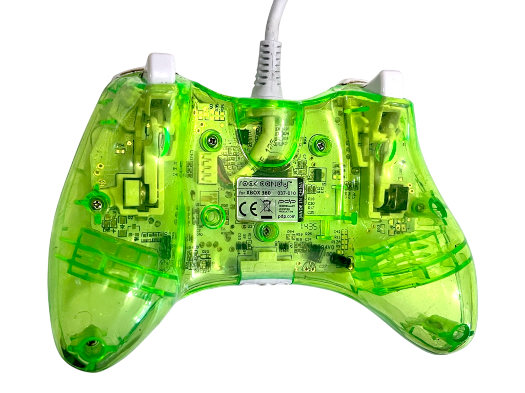 Description: A vibrant transparent green wired Xbox 360-style controller that brings a retro-tech aesthetic to your setup. Designed for reliability and comfort, it features responsive analogue sticks and a familiar layout. Ideal as a budget-friendly primary or spare controller, perfect for local multiplayer sessions or PC compatibility.