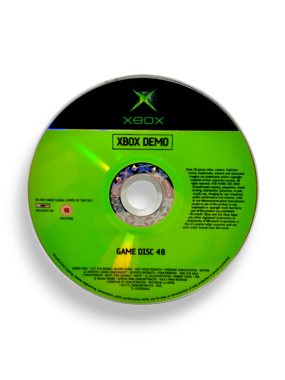 Xbox Demo Game Disc Number 48 for Original Xbox. This preowned game disc is in good playing condition with very light markings and superficial ghost scratches only which do not hinder performance or gameplay in any way. Disc comes inside an empty blank case. Please note that the original case is NOT included.
