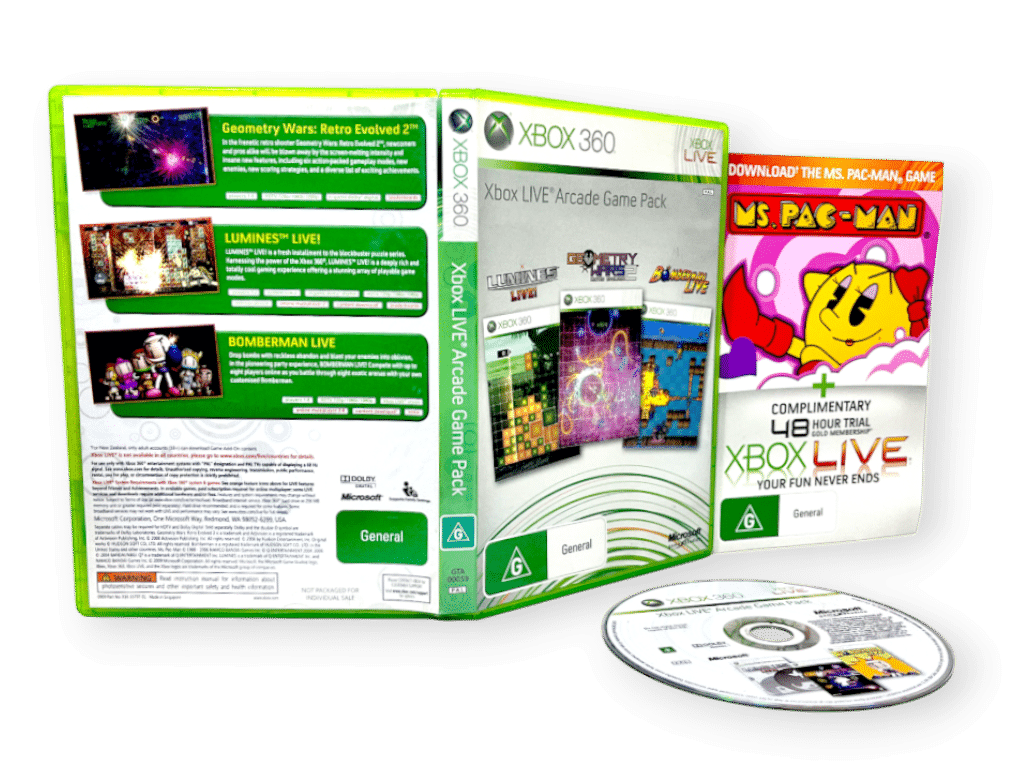 Be the first to review “Xbox Live ARCADE GAME PACK Xbox 360 (Lumines + Bomberman + Geometry Wars)” Cancel reply