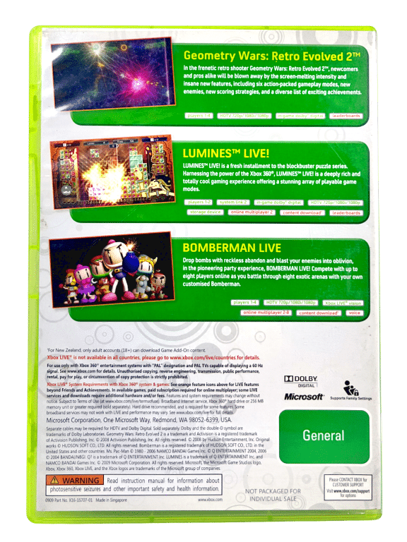 Xbox Live ARCADE GAME PACK Xbox 360 (Lumines + Bomberman + Geometry Wars)