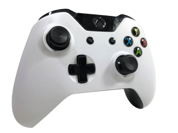 - Matching White XBox One Wireless Controller – V2 (complete white with no black lining. Includes headphone port)