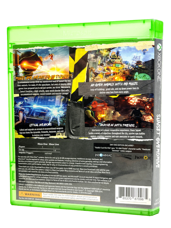 - Bundled Sunset Overdrive DAY ONE EDITION XBox One Game in mint condition & complete with inner contents