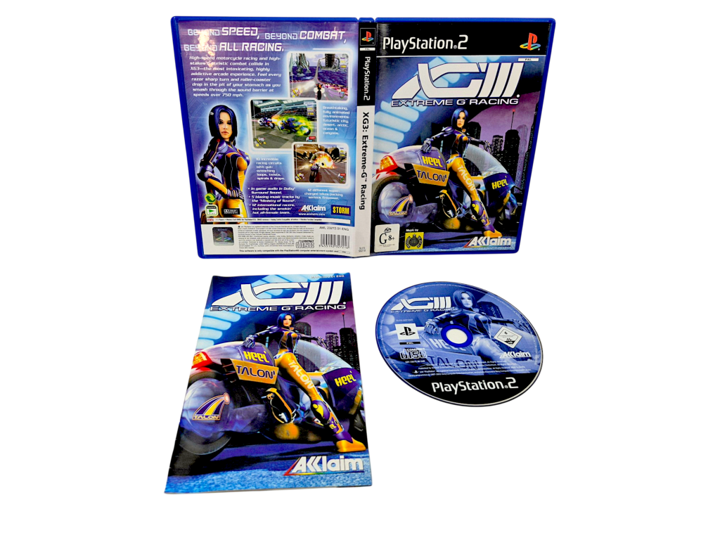 Excellent condition & 100% complete with contents: XGIII Extreme G Racing / EXTREME G RACING (Xtreme G Racing) for SONY PlayStation 2 / PS2. Preowned but in superb condition and complete with original case + cover + manual / booklet + game disc. A very tidy and complete collector’s item.