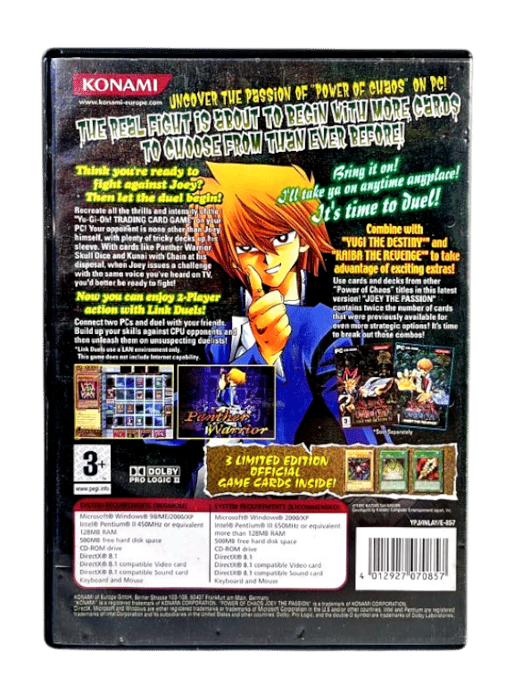 Yu-Gi-Oh Power of Chaos Joey the Passion for PC. This preowned game includes original case + cover + game disc. Some light superficial markings / cosmetic scratches, but these are minor imperfections which do not affect game play in any way.
