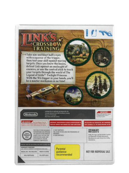 Excellent condition & 100% complete with contents: LINKS CROSSBOW TRAINING for NINTENDO Wii. This preowned game is in superb condition, complete with case, cover, manual / booklet, Nintendo paper insert, and game disc.
