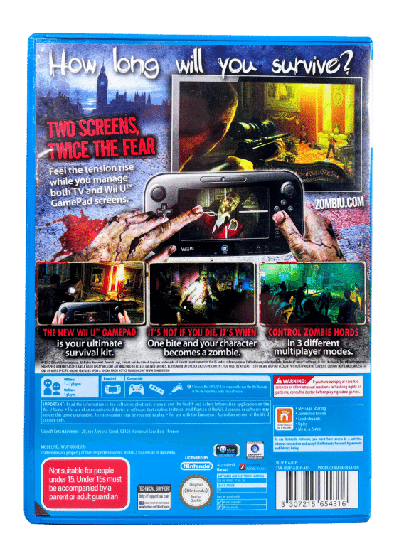 ZombiU is built from the ground up to take full advantage of the Wii U and its revolutionary controller and will test your will to survive in a fear-fueled zombie Survival Horror First Person Shooter. So grab hold of the Swiss knife of survival kits – your Wii U new controller – and stock up your Bug-Out Bag with supplies! Make every second count; you only get one chance.
